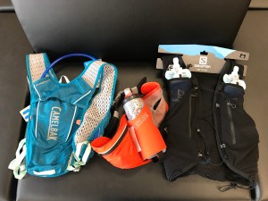 As your runs get longer and the temperature increases you need to start thinking about carrying water during your runs. There are many ways to do this, ranging from hand held devices, to belts, to form fitting running vests. Typical backpacks do not work well for running as they bounce around and become uncomfortable. When shopping for hydration accessories consider how many other supplies you will need to carry, such as a phone, keys, spare jacket, food, etc, and buy something that will suit your needs. It is often advantageous to have a couple different hydration accessories so you can use the one most appropriate for any particular run.